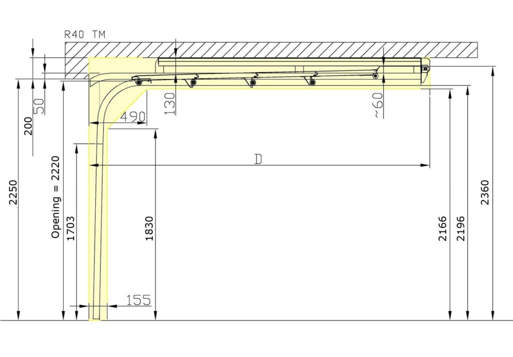 40 mm soojustaud paneel, R40 siinid TM (vedrud üleval 60tuh. avamistsüklit), sillus min. 200, lae H minimaalselt 2450